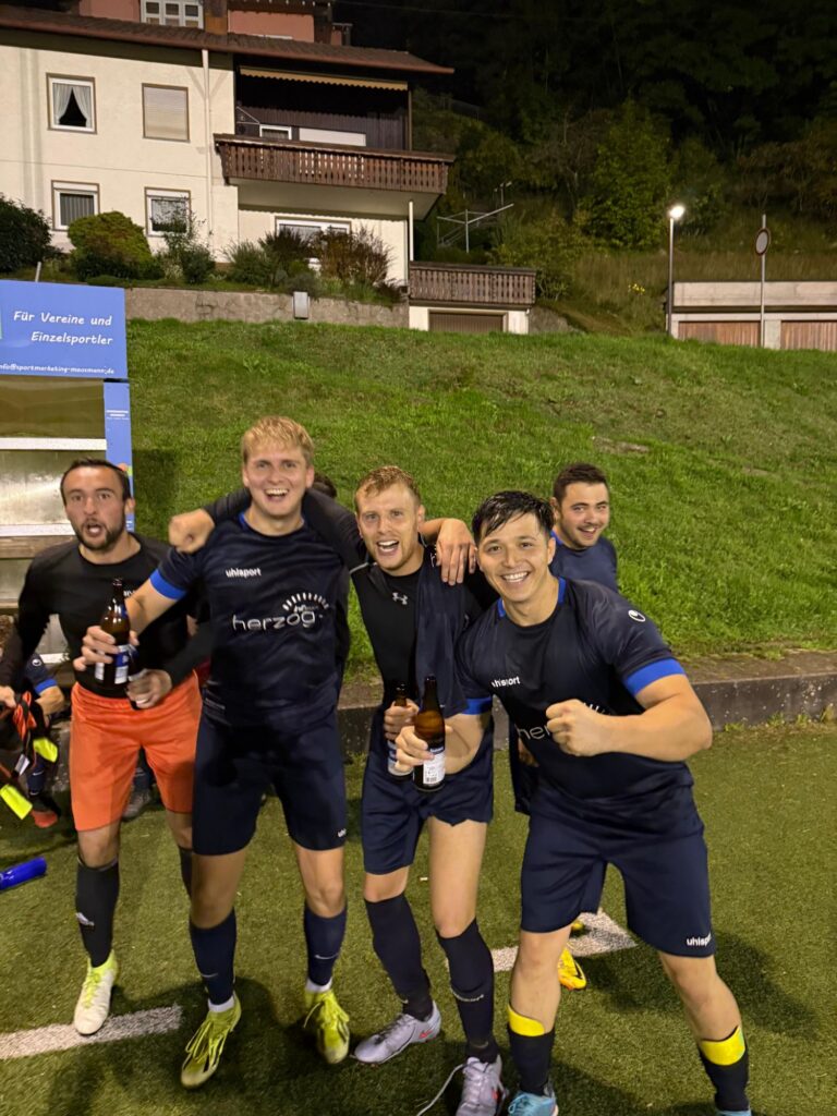Ab da nur noch Kampf. Hintermannschaft wie eine Kreisliga-Version der italienischen Nationalelf 2006: alles weggegrätscht, alles rausgeköpft. Marius, Ronny, Rüben – jeder Ball, der hoch reinflog, war plötzlich deren Eigentum. Abpfiff. 2:1. Tabellenführung.