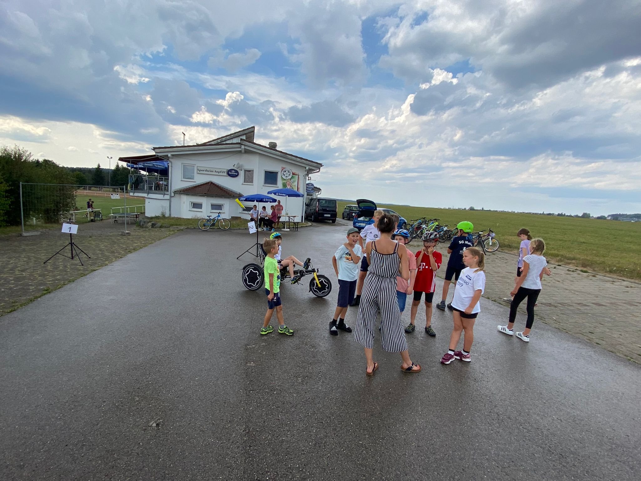 Zum Ferienstart am vergangenen Freitag stand im Rahmen des Kinderferienprogramms Dunningen-Eschbronn ein Fahrradparcours auf dem Programm. Unter der fachkundigen Leitung von Tanja Kaluza-Rall durften die Kinder ihre Geschicklichkeit auf dem Fahrrad unter Beweis stellen. Auf dem Parkplatz des Sportheims in Lackendorf gab es verschiedene Herausforderungen zu meistern. So konnten die Kinder nicht nur ihre Koordination testen und verbessern, sondern haben nebenbei auch noch einige Informationen zur Sicherheit im Umgang mit dem Fahrrad gelernt. Die kurzen Regenpausen haben dem Spaß keinen Abbruch getan, sondern wurden genutzt, um sich an den leckeren Snacks und selbstgebackenen Muffins für die nächste Runde zu stärken.