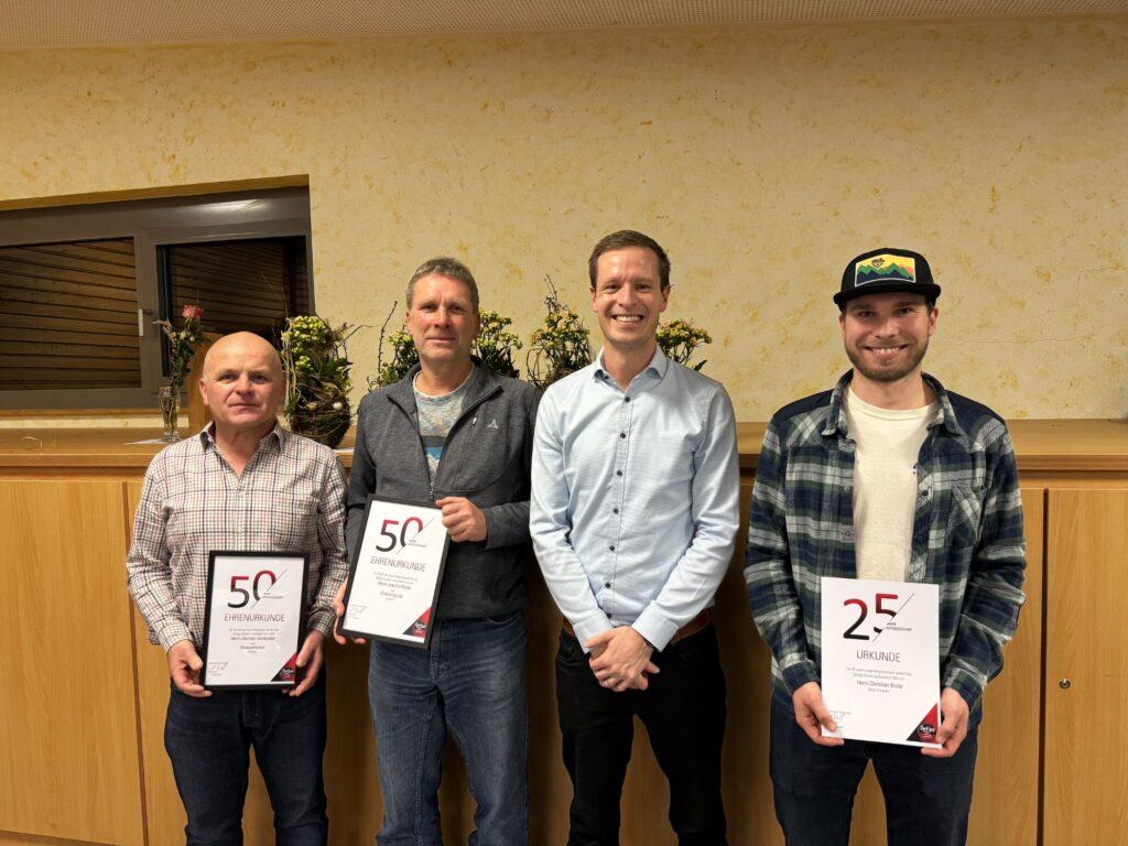 Ein Höhepunkt der Veranstaltung waren die Ehrungen langjähriger Mitglieder. Dominik Gerkens und Christian Bister wurden für 25 Jahre Mitgliedschaft geehrt, während Dietmar Schmieder und Achim Bister für ihre 50-jährige Treue zum Verein ausgezeichnet und somit zu Ehrenmitgliedern ernannt wurden.